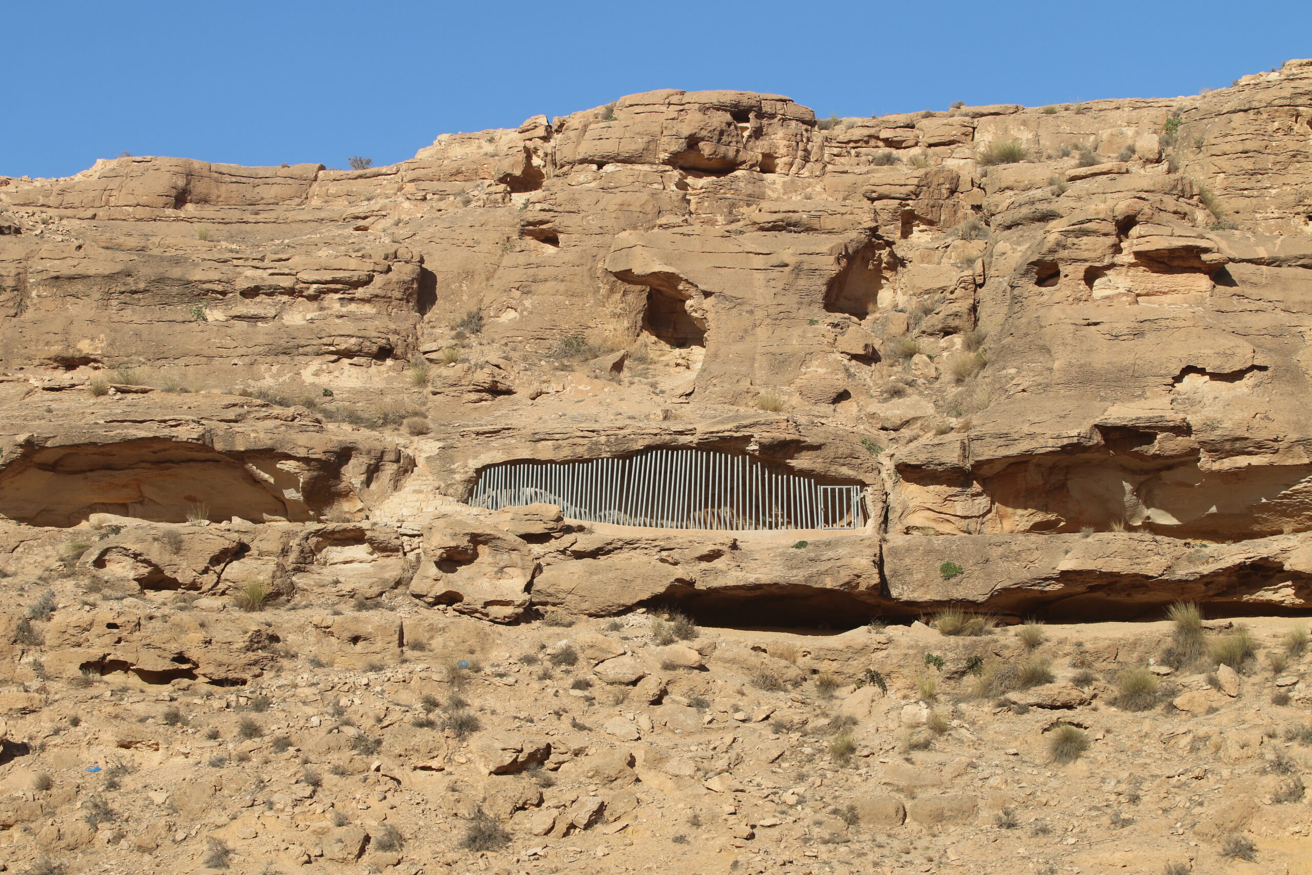 Il s’agit de deux grottes aménagées dominant d’une façon symétrique du part et d’autre d’un canyon creusé dans le calcaire par l’un des affluents d’Oued Ghomrassen. Les peintures sont situés dans l’un des abris sous roche creusés dans les couches de calcaire dolomitique de l’oxfordien qui dominent les vallées dans lesquelles se situe la ville.