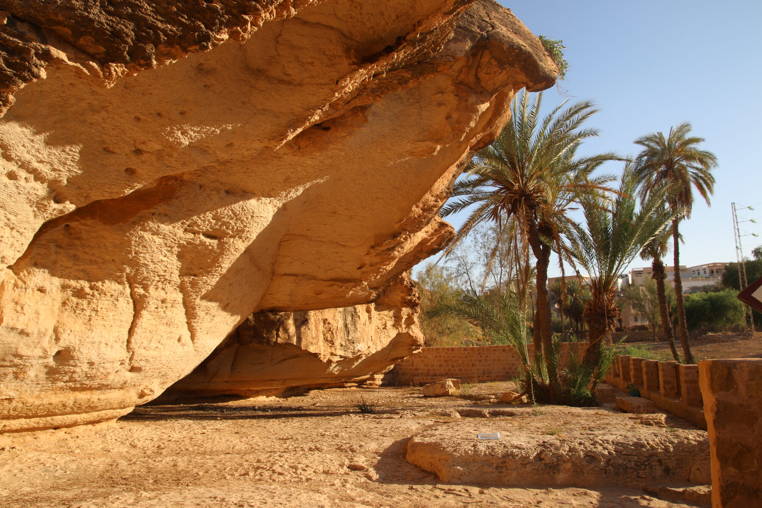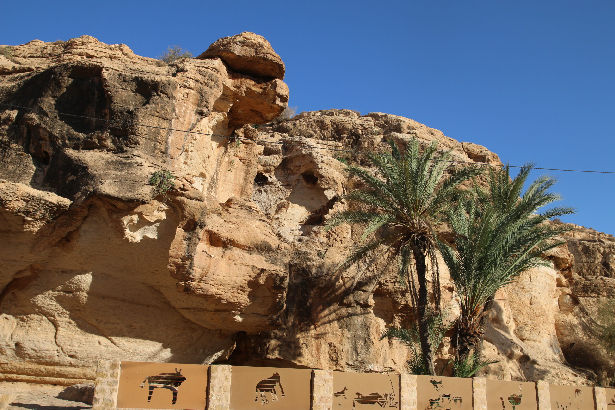 Il y a plus de 5000 ans cette petite oasis de montagne, aménagée en parcelles cultivables sous forme des terraces appelées localement Jessours d’oliviers et de palmiers, contenaient des sources d’eau qui coulaient entre les roches vers la vallée de Ghomrassen donnant à la fois l’abri et la nourriture aux animaux et aux Hommes de l’époque.