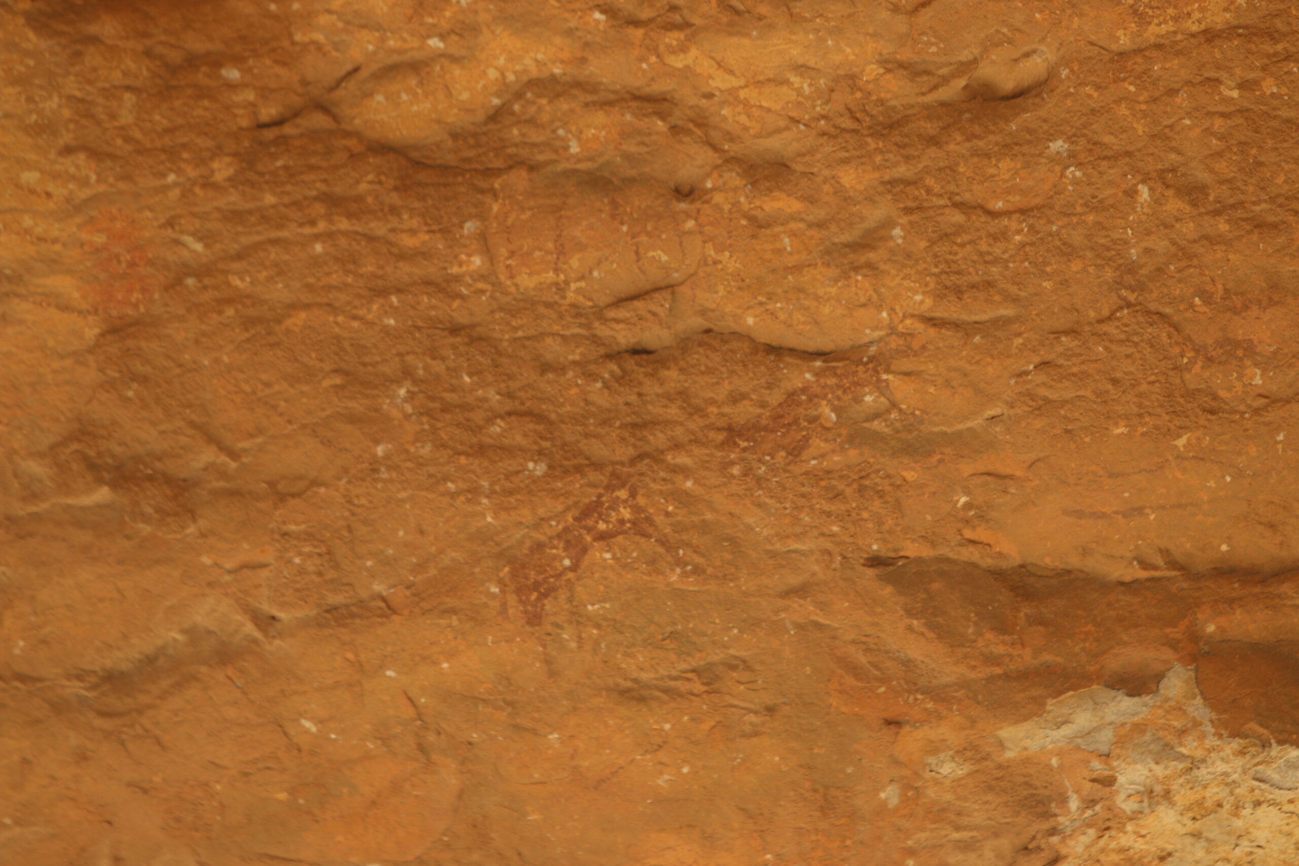 Dans le premier les peintures sont exécutées dans la cavité supérieure. On distingue dans l’ensemble supérieur 3 autruches d’une grande élégance on voit également, Un boviné, et un félin. L’ensemble inferieur est assez homogène et ne comprend que des animaux domestiques, on distingue de gauche à droite Un asinien, Un oviné, Un canidé et une antilope.