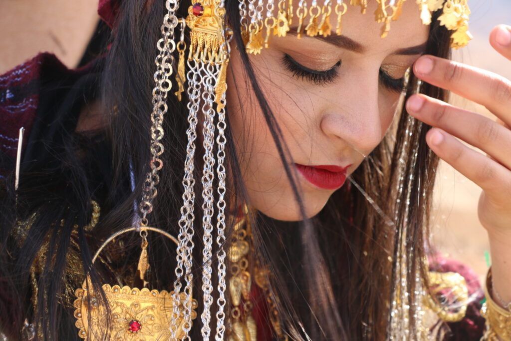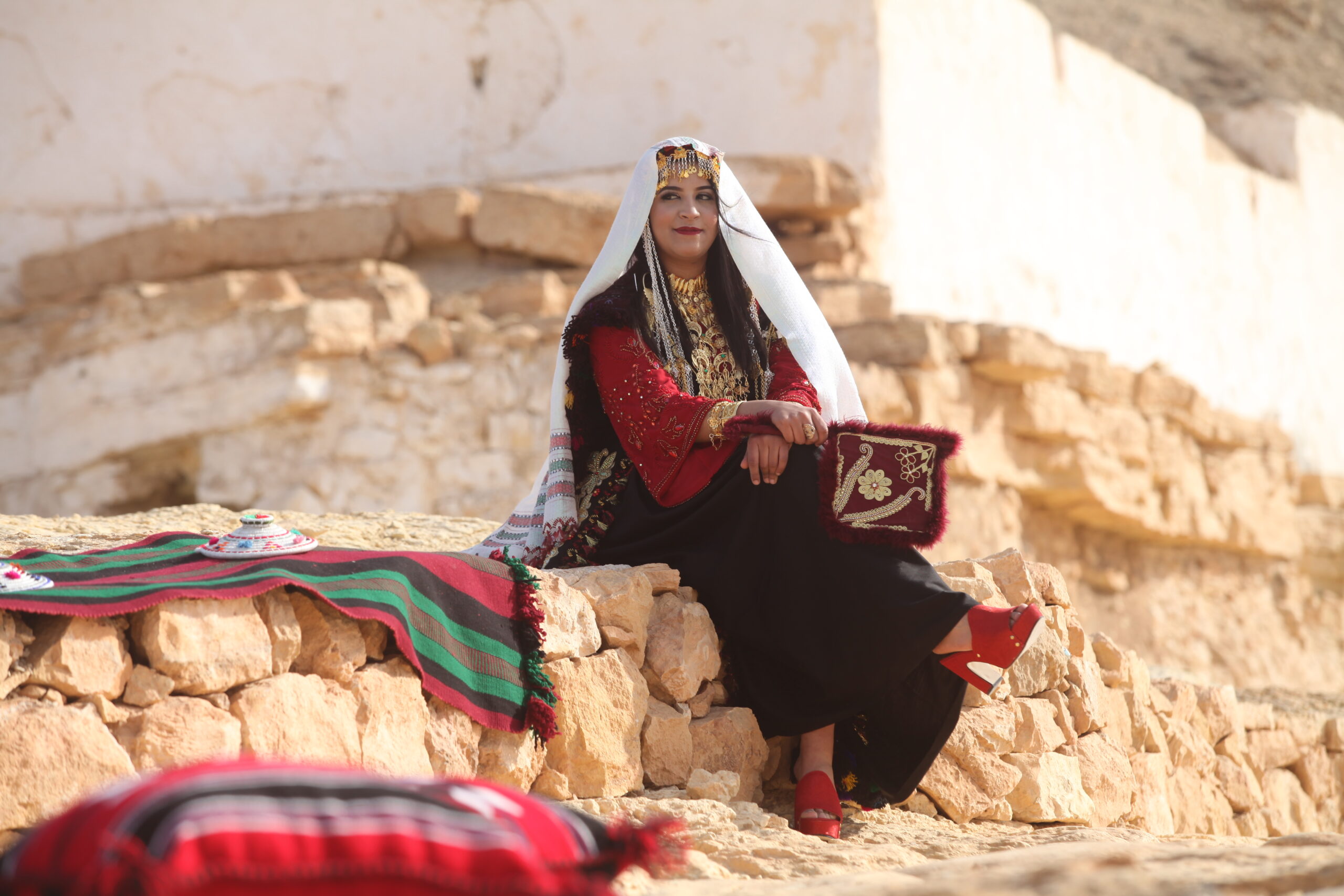 Habit traditionnel de Ghomrassen: Depuis la très haute antiquité les coutumes vestimentaire représentaient un indice pertinent sur l’identité d’une telle ou telle communauté voire même d’un peuple De nos jours ce qu’on appelle habit traditionnel renvoie aussi directement à la notion d’héritage et des pratiques ancestrales. C’est le cas des traditions vestimentaires de la région de Ghomrassen caractérisées à la fois par la beauté et la perfection de son modele stylistique ainsi que par la richesse de son répertoire iconographique. Quoi qu’il soit de vocation féminine ou bien masculine, ce support patrimonial. même s’il est utilisé essentiellement d’une manière périodique notamment fors de fêtes religieuses et surtout dans les cérémonies de mariage, garde toujours une place prestigieuse chez les habitants de Ghomrassen. En effet, le Taljina, le Houli, le Kettfia, le Taref, le bechkir, el mal7fa, elfafa, el Isabu, Echeria, Fichainra, El masour, el Glared, el Tior, le N’hda et bien d’autres éléments constituent les fondements de base des coutumes vestimentaires dans ses deux aspects de vêtue et de bijouterie de la femme Ghomrassinienne